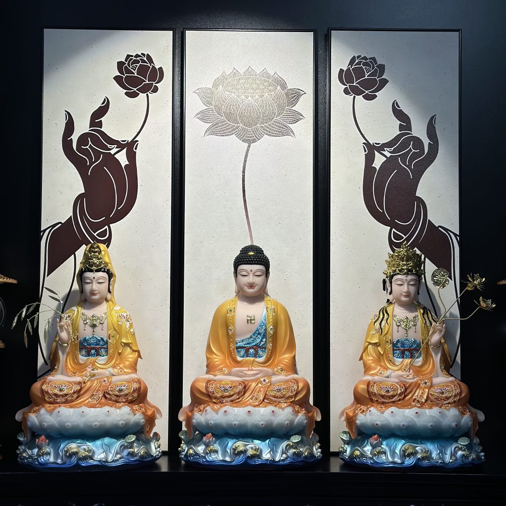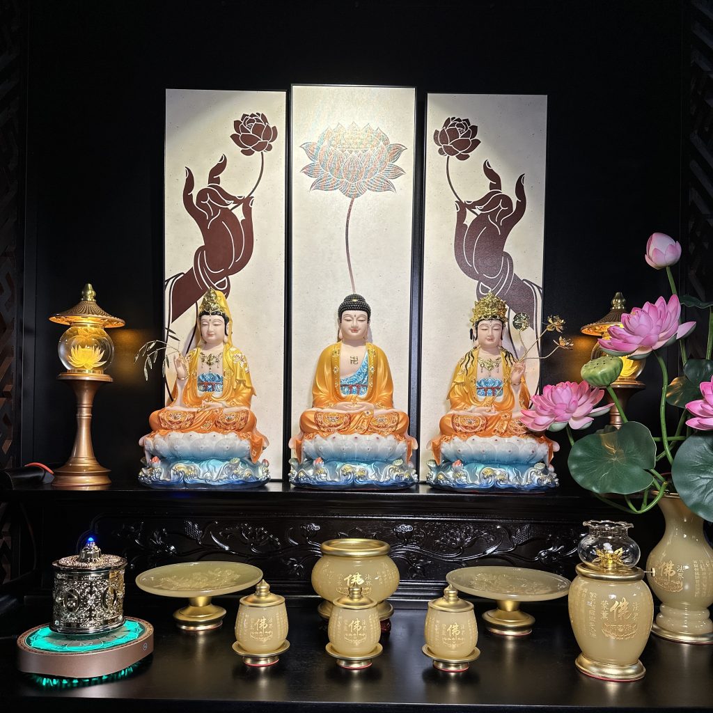 Bộ 3 Tượng Tam thánh Tây Phương: Phật A Di Đà, Quan Thế Âm Bồ Tát, Đại Thế Chí Bồ Tát